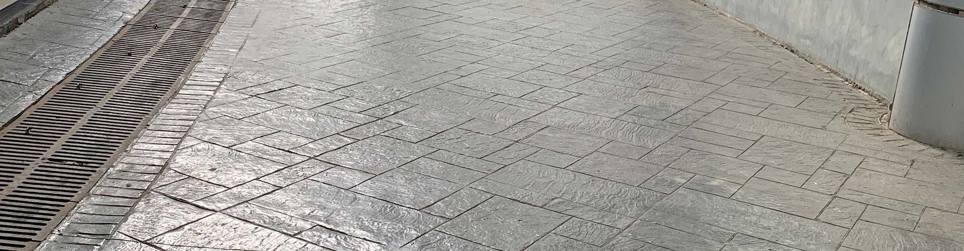 光平地面之后准备上石纹模子。上模子之前,注意别忘了要先将两年半社区彩色脱模粉覆盖一下,不然压出来的纹路不完整,而且不利脱模。
